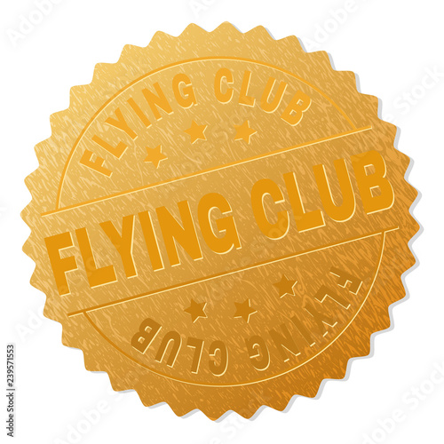 FLYING CLUB gold stamp award. Vector golden award with FLYING CLUB label. Text labels are placed between parallel lines and on circle. Golden surface has metallic effect.