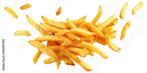Flying delicious potato fries, cut out