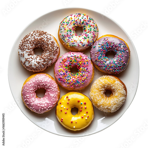 Flying donuts. Mix of multicolored doughnuts with sprinkel on blue background.