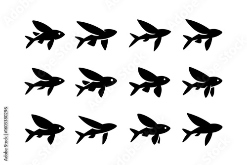 Flying fish silhouette collection featuring dynamic aquatic forms
