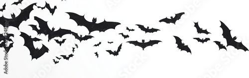 flying flock of black bats isolated on transparent