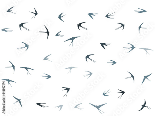 Flying martlet birds silhouettes vector illustration. Nomadic martlets bevy isolated on white.