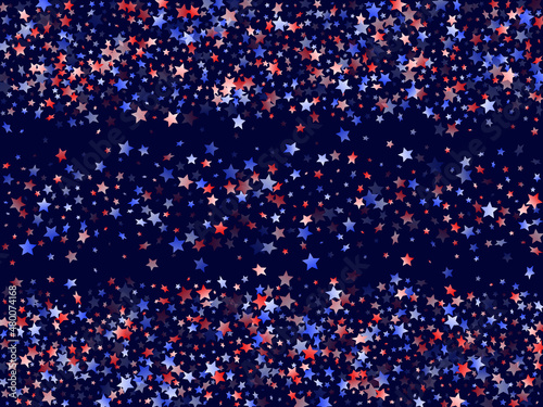 Flying red blue white star sparkles vector american patriotic background.