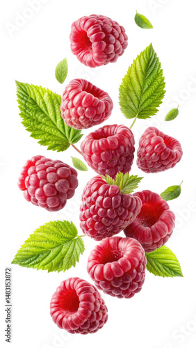 flying red raspberry isolated on transparent white background, clipping path
