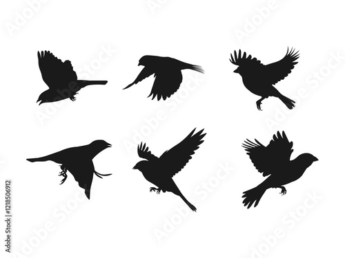 Flying Sparrow Silhouette. set of silhouettes of sparrows, silhouettes of birds. Sparrow silhouette vector art illustration. The sparrow silhouette vector illustration. vector on a white background.