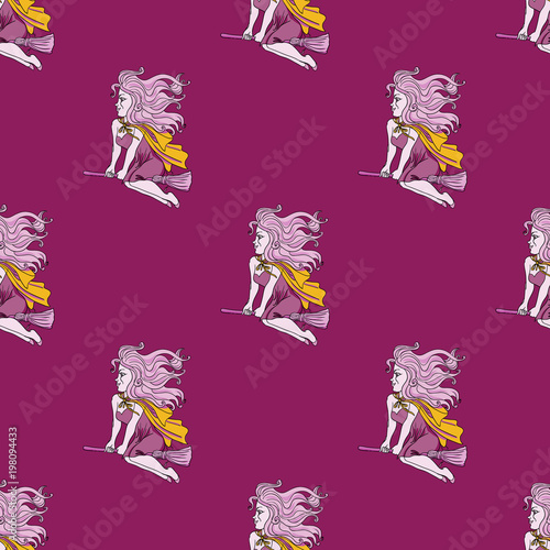 Flying witch seamless pattern. Original design for print or digital media.
