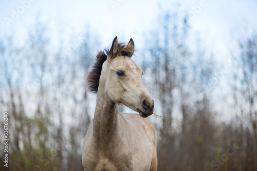 Foal playing in the autumn meadow