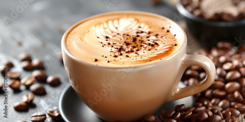 Foam bean latte art in a coffee cup on a white background. Concept Latte Art, Foam Bean, Coffee Cup, White Background