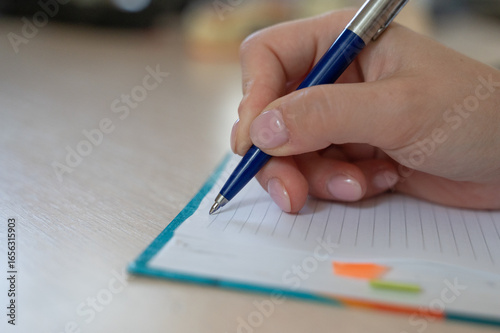 Focus on Writing A Hand Holding a Pen on an Open Notepad for Creative Expression