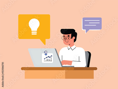 Focused Businessman Working on Laptop, Generating Ideas and Communicating