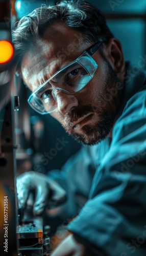 Focused CNC Machine Operator Wearing Safety Gear in an Industrial Setting for Professional Printing