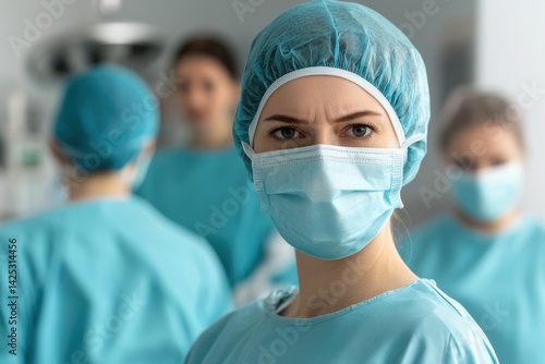 Focused Healthcare Worker in Surgical Attire Amidst Hospital Setting