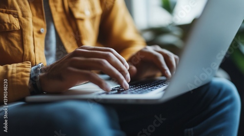 Focused individual engrossed in creative work on a sleek modern laptop