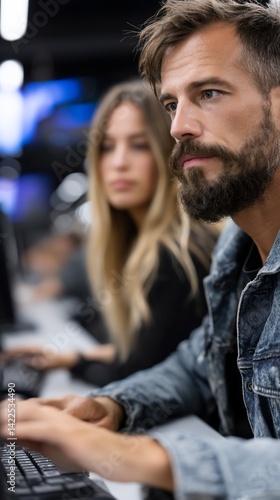 Focused individuals working on computers