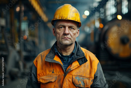Focused Industrial Engineer Wearing Safety Gear in a High-Tech Manufacturing Facility, Generative AI