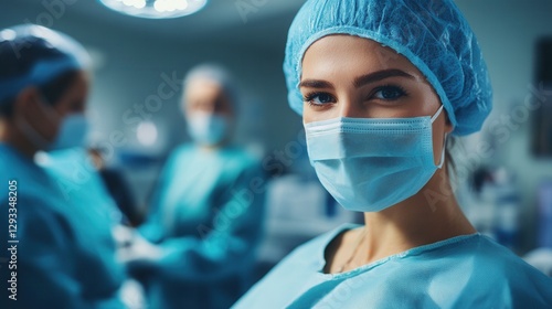 Focused Medical Professional In Surgical Attire.keywords woman, doctor, nurse, medical, surgical