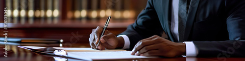 Focused Observer: A law clerk taking meticulous notes during a trial.