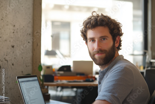 Focused Professional in Modern Workspace