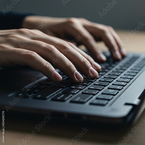 Focused Typing Hands at a Tech Startup Workspace