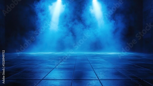 Foggy Cyberpunk Street with Blue Spotlight and Glossy Floor