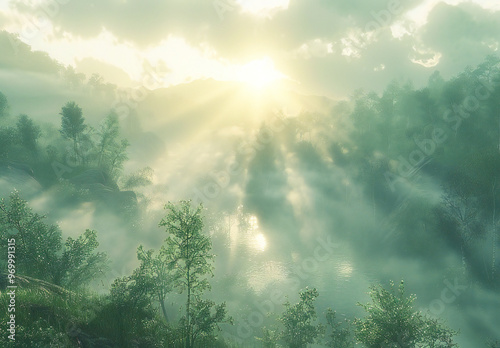Foggy Landscape at Early Morning Mist