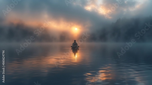 Foggy Morning Meditation A peaceful foggy morning scene with ample space around for adding serene and meditative text