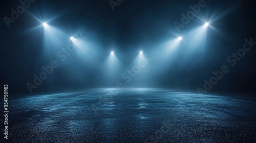 Foggy Night Scene on Dark Wet Asphalt Street with Illuminated Lights