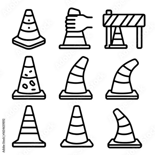 Foldable barricade traffic next cone marks urban gripped bent icon vector road