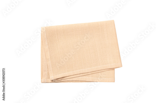 Folded beige cotton nakin isolated on white background.