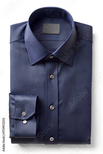 Folded blue dress shirt isolated on white background, showcasing a modern and stylish design