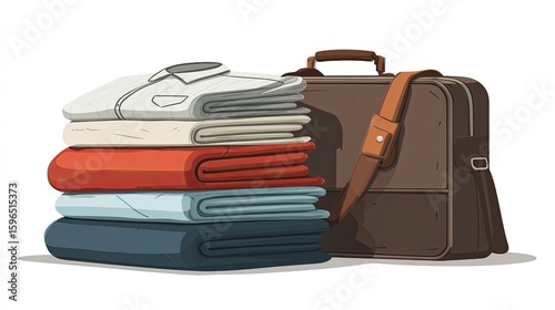 Folded Clothes Stacked Near Brown Leather Suitcase