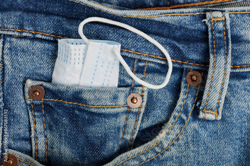 Folded face mask in jeans pocket