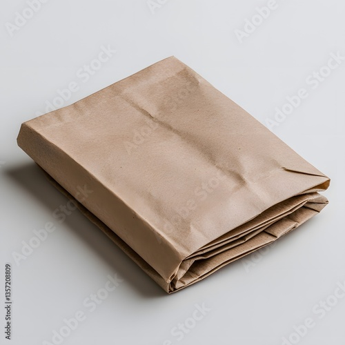 Folded kraft paper bag on white background, studio shot, packaging mockup