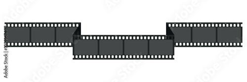 Folded long movie film strip isolated on white background. Film strip template. Vector illustration