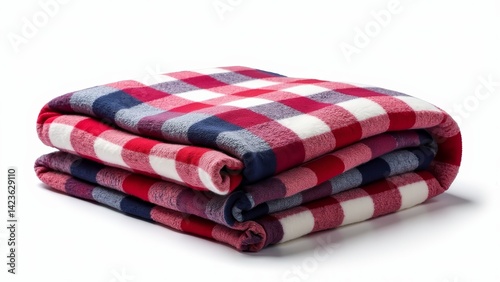 Folded Plaid Blanket, Red-White-Blue Color