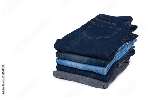 Foldet jeans in pile, isolated on white background. copy space template