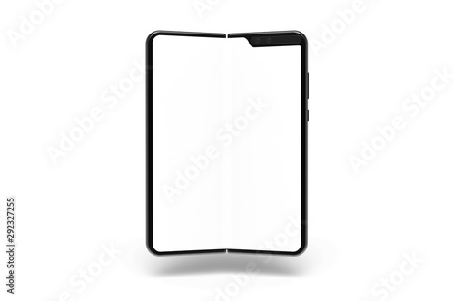 Folding Smart phone empty screen view on the white background