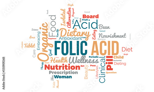 Folic Acid word cloud background. Healthy Food awareness Vector illustration design concept.