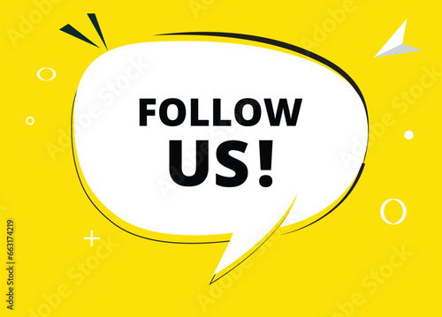 Follow us speech bubble text. Hi There on bright color for Sticker, Banner and Poster. vector illustration.