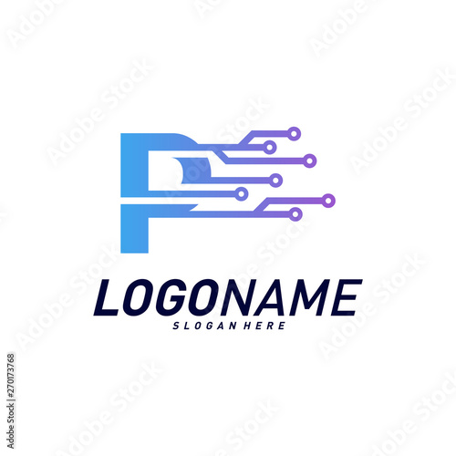 Font with Technology Logo Design Concepts. Technology Letter P Logo Icon Vector Template. Icon Symbol.