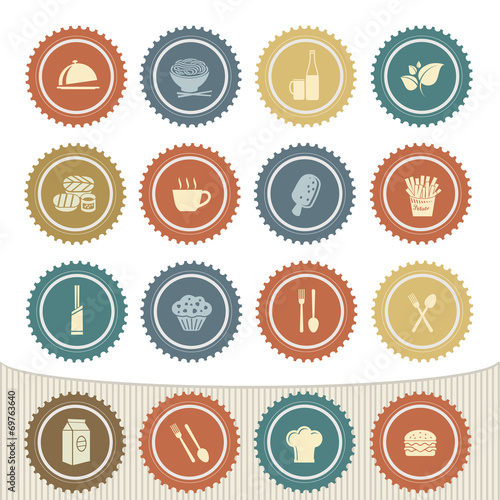 Food and drink icon set,Retro button
