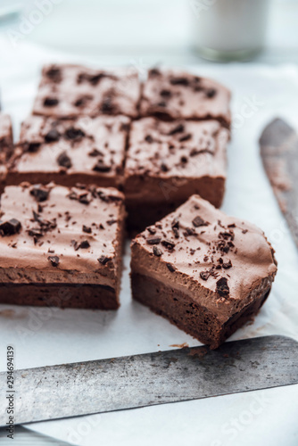 Food: Brownies, vegan with chocolate ganache