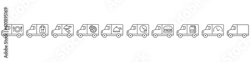 Food delivery icon vector set. Takeaway food illustration sign collection. fast food symbol. Restaurant on wheels logo.