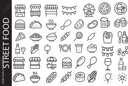 Food Festival & Street Food Line Icon Set. Carnival, Fair & Food Truck Symbols.