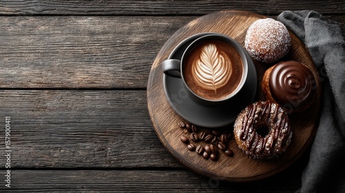 Food flyer template with coffee and desserts combo, rustic wooden background and cozy vibe