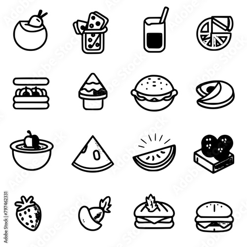 Food icon, menu icon, restaurant icon, dinner icon, kitchen icon, silhouette icon, banquet icon, bar icon, catering icon, fish icon, hamburger icon, food, cake, icon, vector, coffee, set, illustration