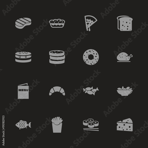 Food icons - Gray symbol on black background. Simple illustration. Flat Vector Icon.