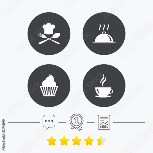 Food icons. Muffin cupcake symbol. Fork, spoon.