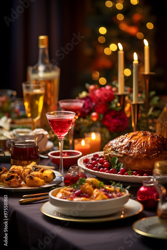 Food on the table for a banquet