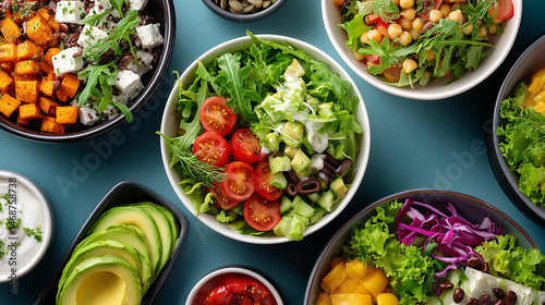 food, salad, vegetable, meal, healthy, fresh, dinner, appetizer, plate, dish, lettuce, diet, green, lunch, vegetables, meat, vegetarian, table, delicious, tomato, health, fish, white, tasty, cheese,fo